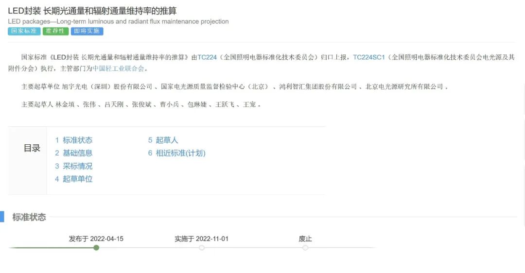 GB/T 41423-2022 《LED封装 长期光通量和辐射通量维持率的推算》文件由中国轻工立联合会提出,kaiyun入口光电牵头制订,全国照明电器标准化技木委员会(SAC/TC 224)归口,文件于2022-4-15发布,2022-11-1实施;LED封装是照明和植物光照用产品的核心器件,该标准规范了LED封装长期光通量和辐射通量维持率的推算程序和条件。
