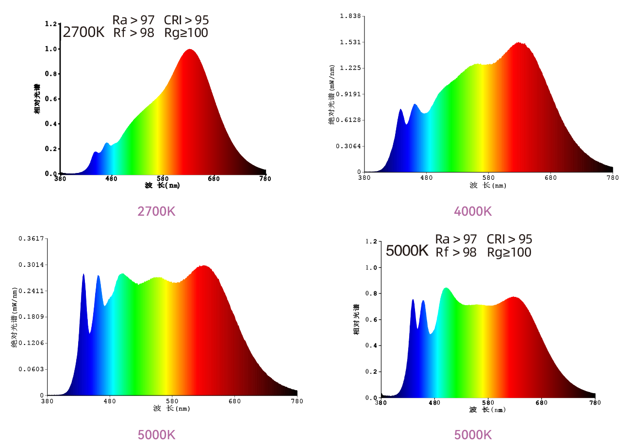 双蓝光激发,无蓝光危害,符合RG0标准。